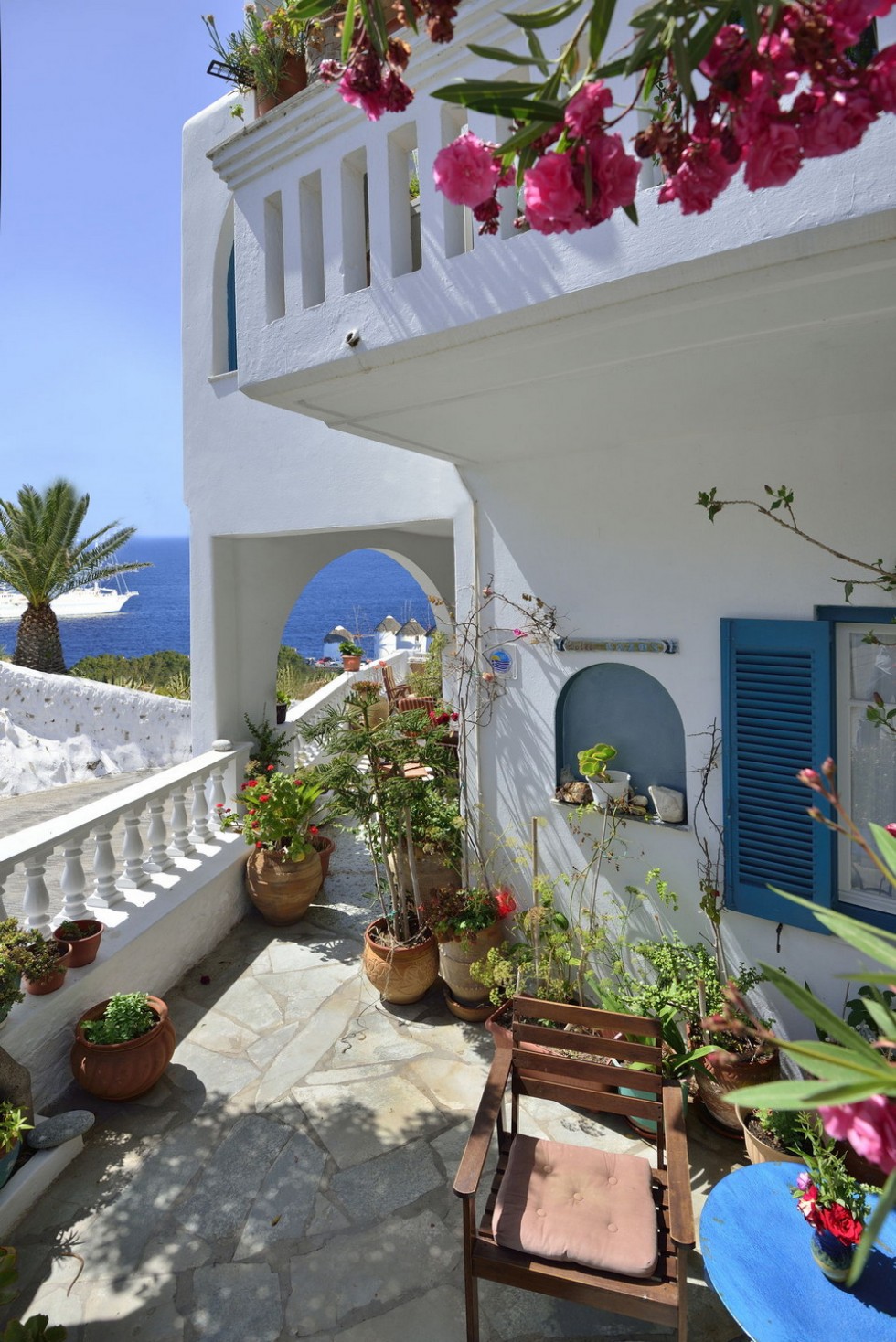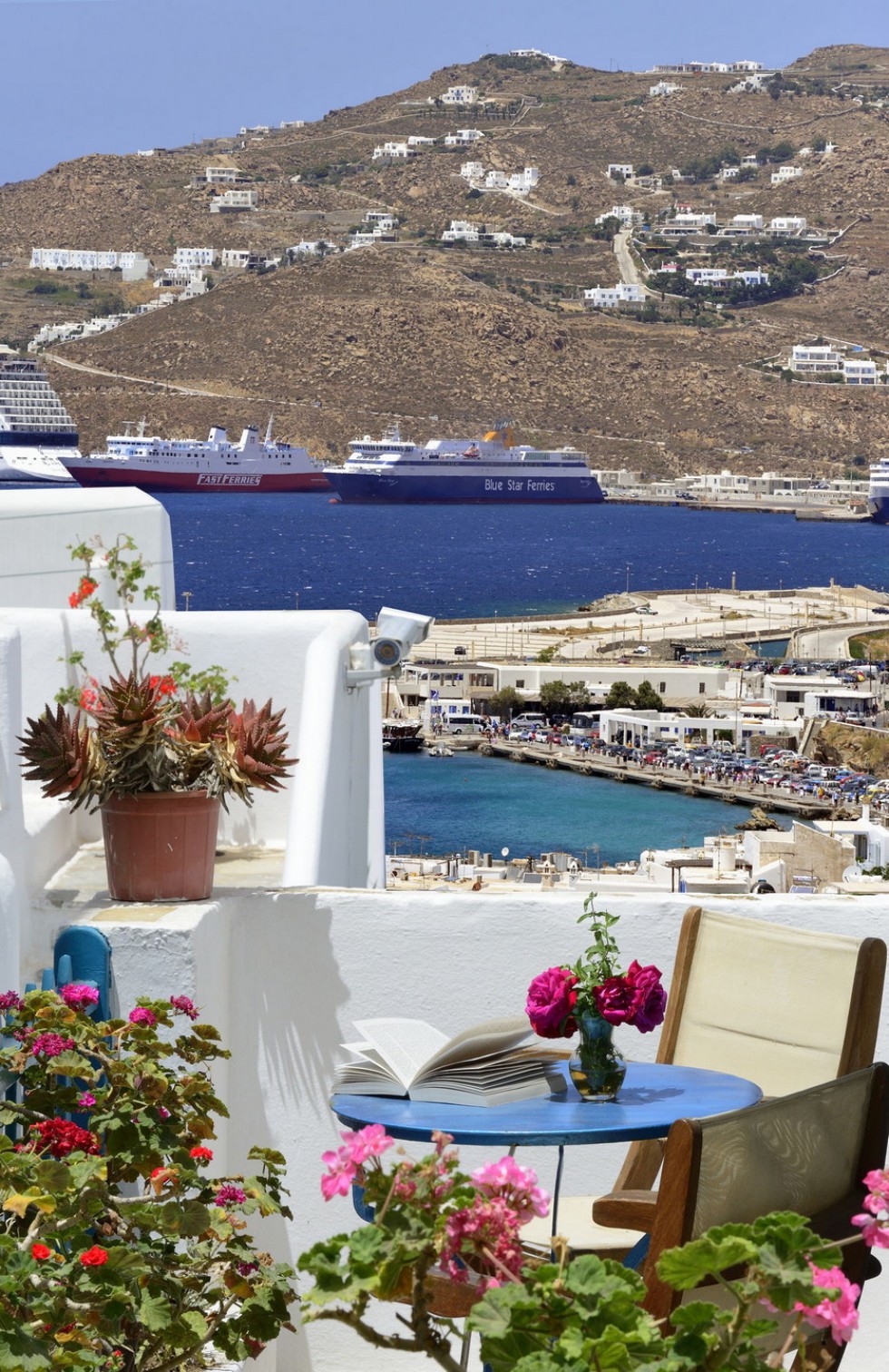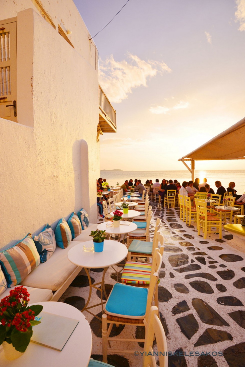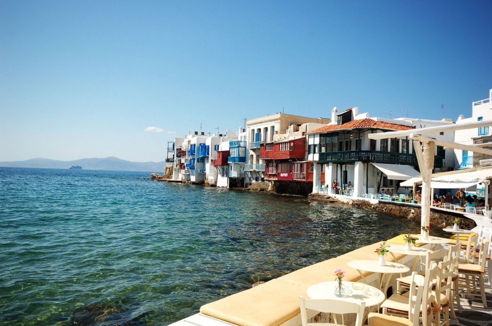 Mykonos Hotel Nazos accommodation offers budget, standard or luxury accommodation rooms with sea and town view with a small bar breakfast area for your early breakfast or late drink before your night out in Mykonos town.