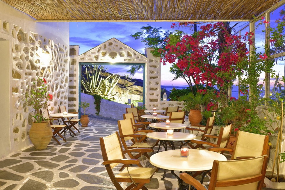 En el bar del Hotel Nazos usted puede tomar un trago antes de dirigirse a la vida nocturna del centro de Mykonos. Disfrute de una cerveza en la noche antes de introducirse en una corta caminata a la ciudad de Mykonos. Pero por favor, no se sienta intimidado, también permitimos a nuestros huéspedes que disfruten sus propias bebidas, acorde a su placer observando la Hermosa vista de la ciudad de Mykonos.