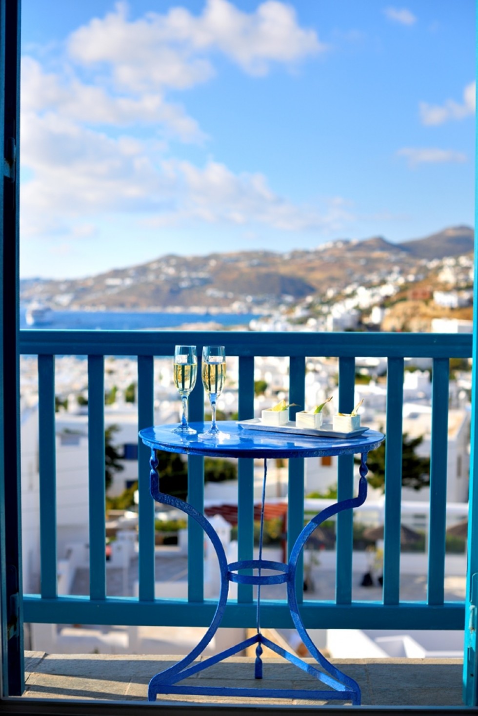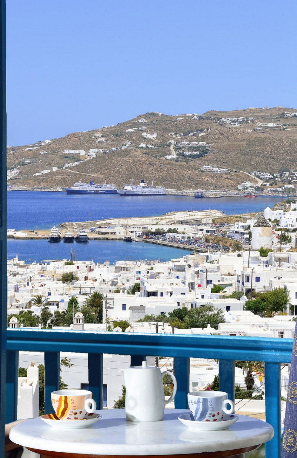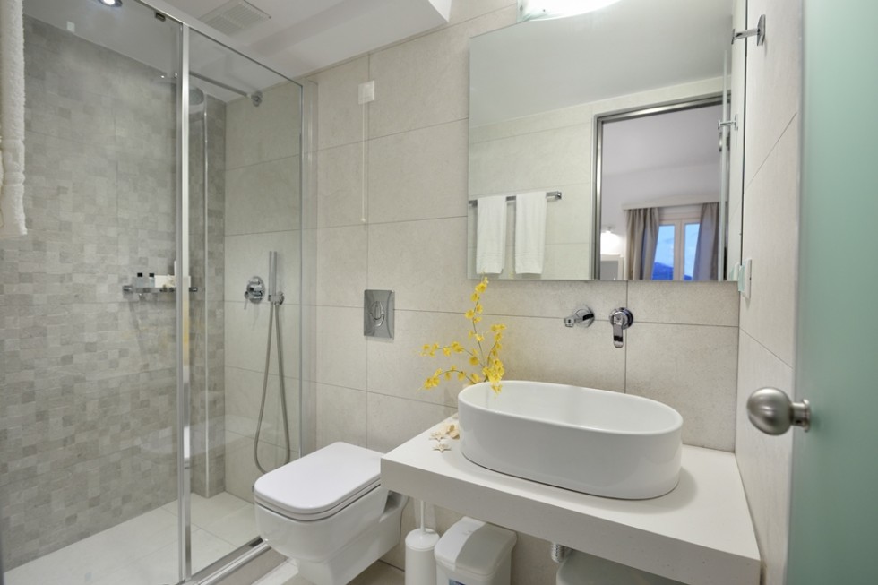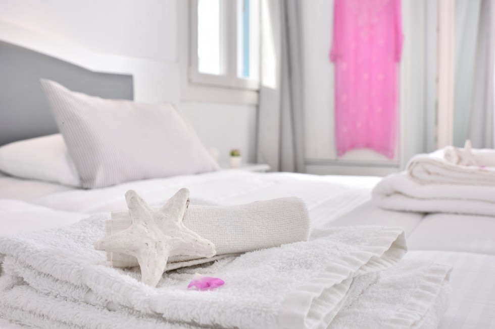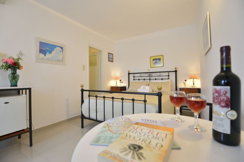 This room is for 2 people. This is a twin bedded or double room with a private balcony or terrace and an amazing view towards mykonos town and the sea. There are available 1 extra bed or cot.