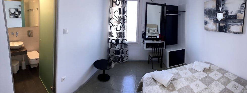 This room is for 1 person. This is a room with a double for single occupancy. Can accommodate an extra person for the price of the double room. we have only 3 single rooms .2 of them they have a big window with view to sea and town and one without view that the guest can use the veranda in front of the hotel and enjoy the best sunsets.